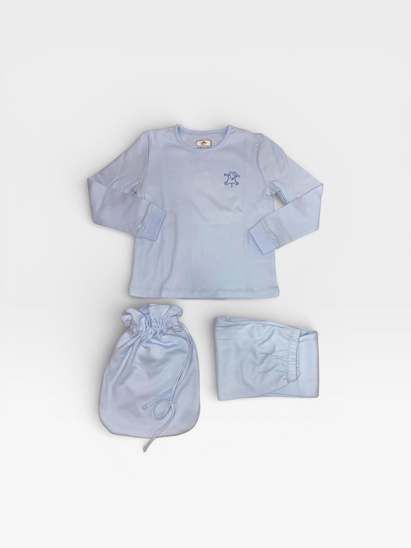 La maglia a maniche lunghe presenta un semplice girocollo rifinito e una linea confortevole che permette ampia libertà di movimento. Sul lato cuore spicca un piccolo ricamo tono su tono raffigurante un simpatico animaletto stilizzato, un dettaglio discreto che aggiunge un tocco di tenerezza e qualità artigianale al completo. I polsini elasticizzati alle maniche garantiscono una tenuta ottimale, impedendo al freddo di entrare. Il pantalone coordinato segue la stessa filosofia di comfort, con un taglio morbido e una vita elasticizzata pensata per non stringere. I polsini alti alle caviglie mantengono il pantalone perfettamente in posizione per tutta la notte, assicurando che il bambino resti sempre coperto. La qualità del cotone selezionato garantisce un'ottima traspirabilità, mantenendo la pelle asciutta e protetta.Bustina porta pigiama inclusa.