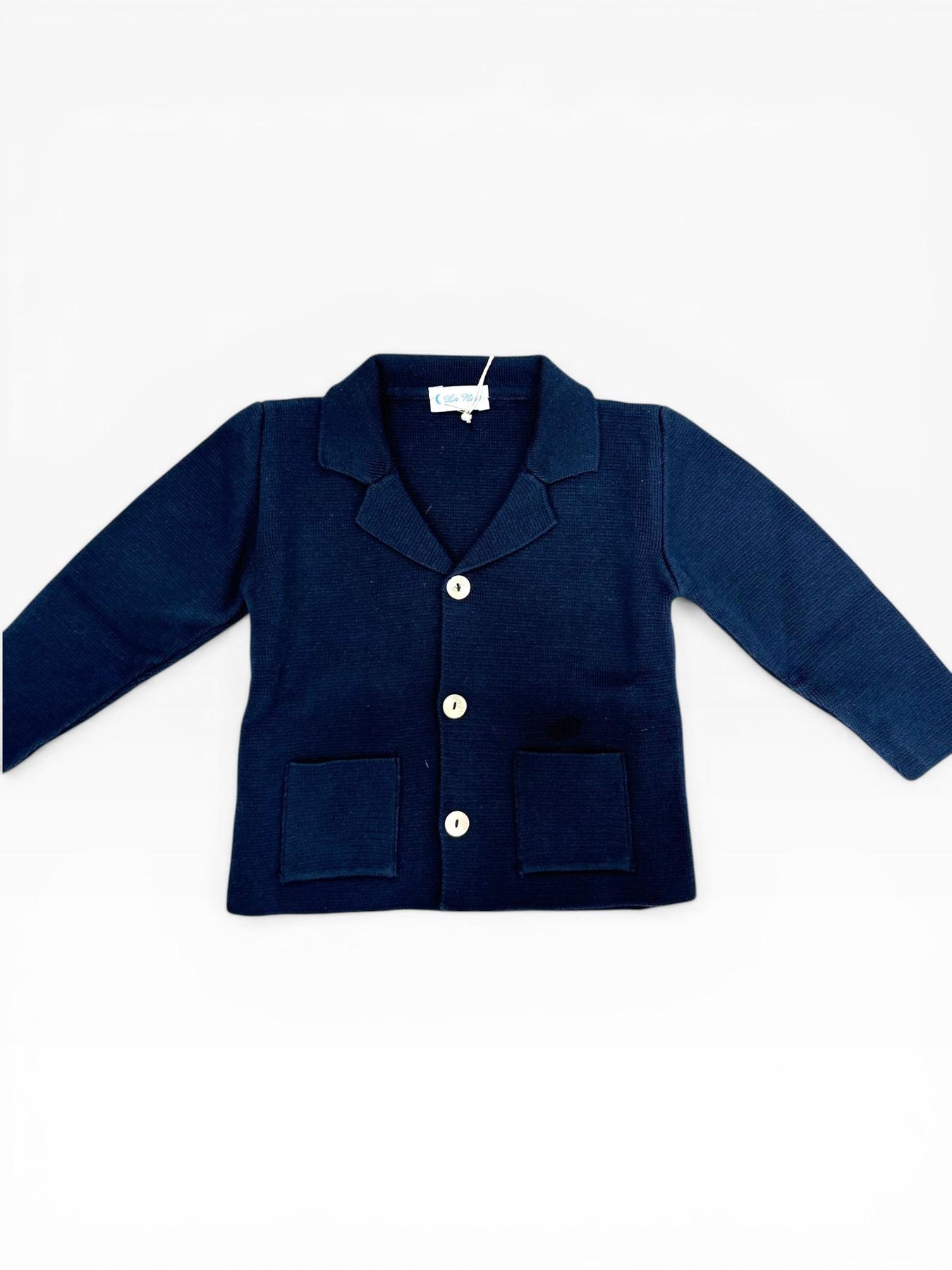 Questo cardigan a giacca unisce l’eleganza di un blazer alla morbidezza della maglieria in filo. Caratterizzato da un classico rever a lancia e una chiusura frontale a tre bottoni in madreperla che creano un ricercato contrasto cromatico, il modello è completato da due pratiche tasche applicate sul davanti. La lavorazione in maglia compatta assicura una vestibilità impeccabile e confortevole, rendendolo il capo ideale per completare outfit formali o casual-chic con un tocco di intramontabile stile sartoriale.100% cotone