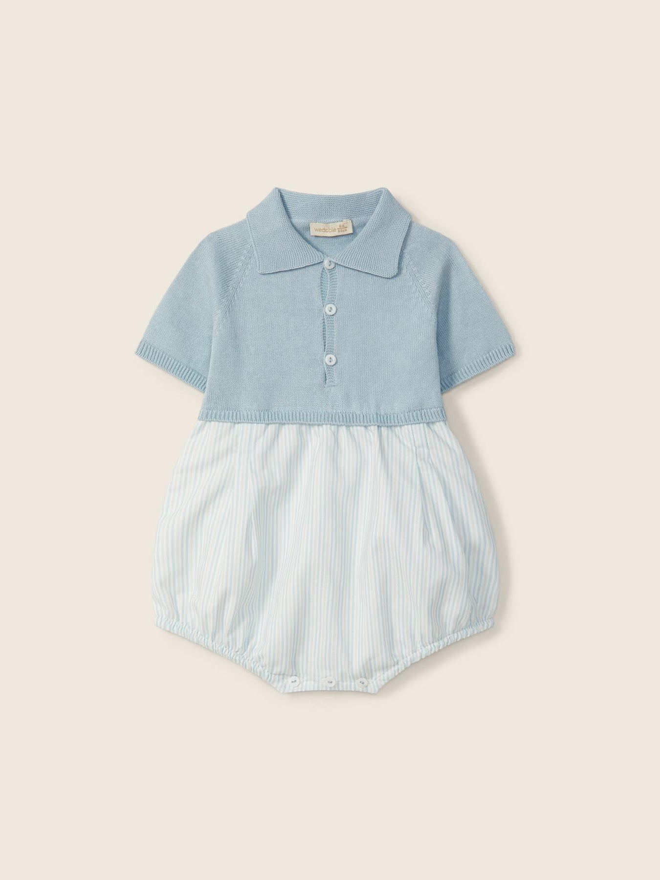 Realizzato in morbida maglia a rete fine di cotone biologico, i pantaloncini sono in morbido tessuto di cotone, con delicate righe blu e bianche, e sono foderati per un maggiore comfort. La chiusura è con bottoni in madreperla sul davanti e tra le gambe. Realizzata in un unico pezzo senza cuciture, Wholegarment, per il massimo comfort del tuo bambino.Maglia: 100% cotone biologico. Tessuto: 100% cotone. Fodera: 100% cotone.